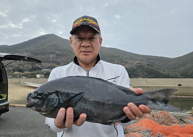 ●3位には対馬市の扇さん、口太クロ44.4センチを釣り上げました!