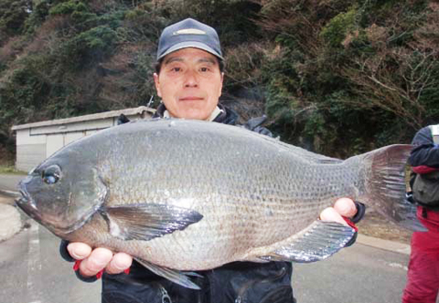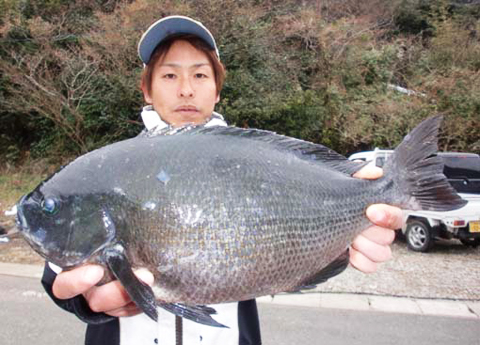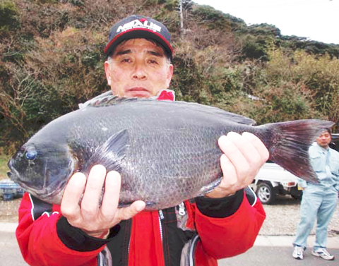 厳原町の東さんは口太クロ45.5cm・1.55kgを釣り上げ、準優勝しました。東さんには賞品として「制覇グレ・1ケース」が進呈されました。 |