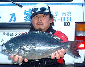 | 2月28日、美津島町の松村さんは、口太クロ49cm 1.75kgを釣り上げました。 松村さんは第三回梅乃家クロ釣りダービーの頂点に立ち、見事栄冠を手にしました。 松村さんには梅乃家より「シマノ・極翔 磯1.5号-53H」が進呈されました。 優勝おめでとうございます。 優勝魚である49cmのクロを掛けて、取り込みの際にハエ根に潜られたため、タモ入れも不可能な松村さんは、自ら海へと入り、ハエ根を渡って胸まで浸かりながら見事に手中に収めました。 隣の磯で、当時の状況を見ていた釣客も驚いていたようです。 実はこの時、隣の磯で見ていたのは、本日帰港検量前まで暫定トップだった厳原町の久和さんだったのです。 久和さん曰く、「参りました!」との事でした! |