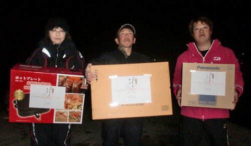 ![]() | 3位にはこれまた2大会連続入賞の小島さん 口太クロ37.5cmを釣り上げました!3位の小島さんには賞品として「 パナソニック IHクッキングヒーター 」が進呈されました。 |