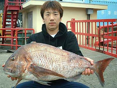 | 2004年10月より年末まで開催された「第3回梅乃家真鯛釣りダービー」の優勝者は、83,5cm 7,0kgを見事釣り上げた直方荒磯クラブ所属の栗原さんに(福岡県)決定致しました!! 栗原さんには優勝賞品として梅乃家より「ダイワ・スーパーインターライン・ブレイゾン5号-52遠投」が進呈されました。 優勝おめでとうございます。 |
