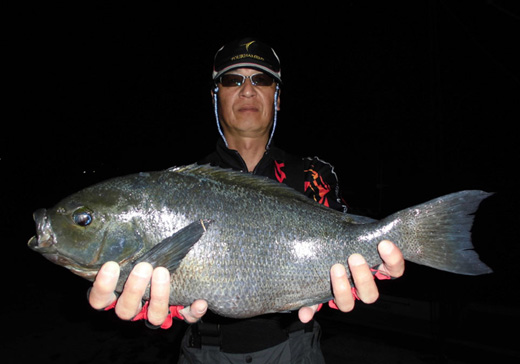 | 3月4日、第48回チーム梅乃家クロ釣り大会が開催されました!(参加者15名) ● 栄えある栄冠を手にしたのは対馬市の山営さん 口太クロ49.7cmを釣り上げ見事頂点に!! 山営さんには優勝賞品として「釣武者 キーパーバッカン55」と「サンラインBOX」が進呈されました! |