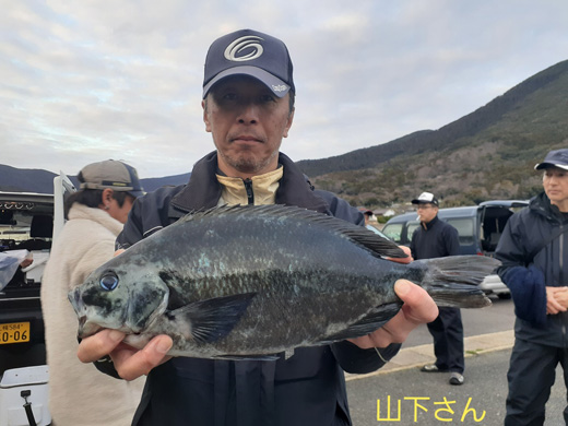 | ● 準優勝には対馬市の山下さん、口太クロ44.5センチを釣り上げました! 山下さんには賞品として『食器乾燥機』が進呈されました! |