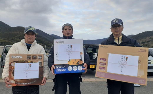 | 2月25日、第54回チーム梅乃家のクロ釣り大会が行われました! ● 栄冠を手にしたのは対馬市の福井さん、口太クロ45.8センチを釣り上げ見事優勝しました! 優勝した福井さんには賞品として『高圧洗浄機』が進呈されました! |
