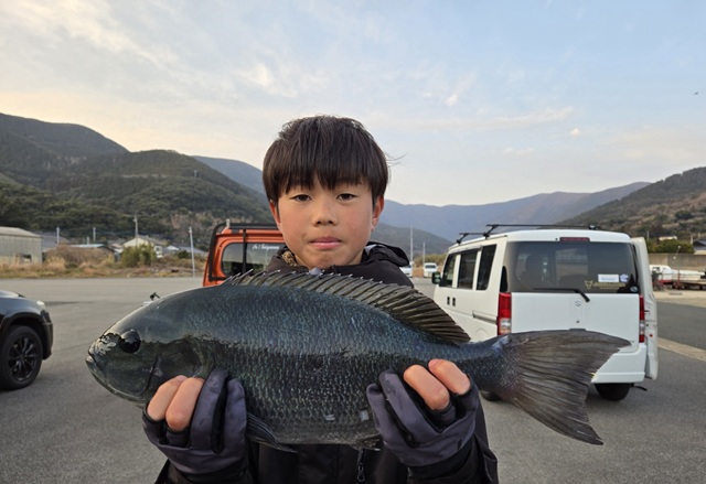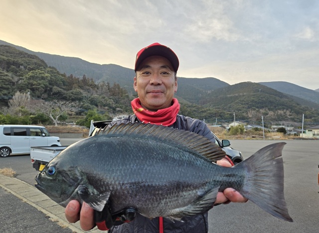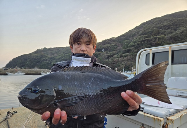 ●3位には対馬市の小嶋さん、口太クロ45センチを釣り上げました!