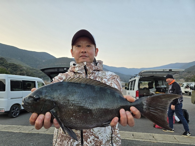 ●3位には対馬市の内山さん、口太クロ46.2センチを釣り上げました!