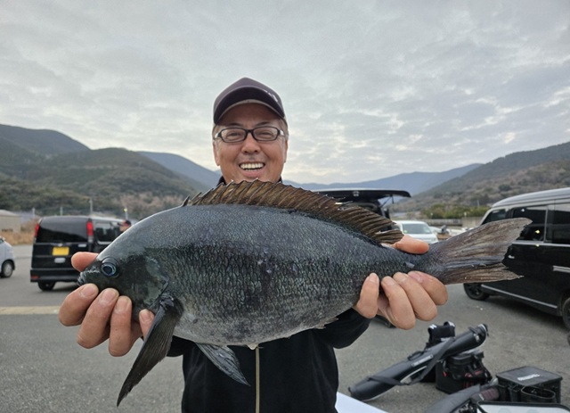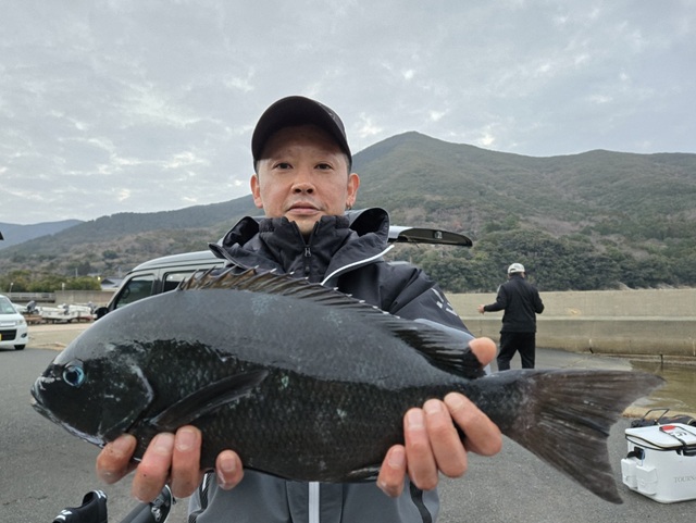 ●3位には対馬市の扇さん、口太クロ44.4センチを釣り上げました!