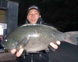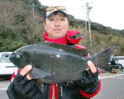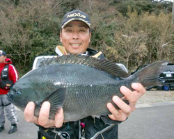 藤本さんは口太クロ43.8cmを筆頭に2匹分の長さ83.8cmで3位に入賞しました。 |