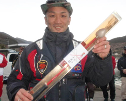 準優勝は2匹長寸74.8cmを釣り上げた島津さん!島津さんには「賞金」が贈られました。おめでとうございます。 |
