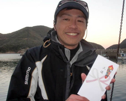 | 15位の島津さん(厳原町)には、オサダ対馬店のご協賛による「ヒロキュー集魚剤1ケース」が進呈されました。 | ||